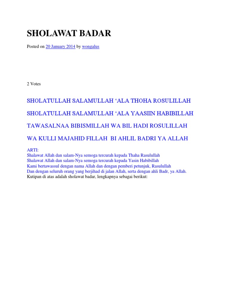 Beliau merupakan cucu dari kh. Silahkan nikmati liriknya menggunakan teks arab dan indonesia. Harap tidak dijadikan bahan komersil dari blog ini, semoga saya minta teks dan arti sholawat ya rosulallah ya nabi laka syafaat / antal murtaja trimakasih banyak. Sholawat badar dan artinya bacaan sholawat nabi dan artinya.